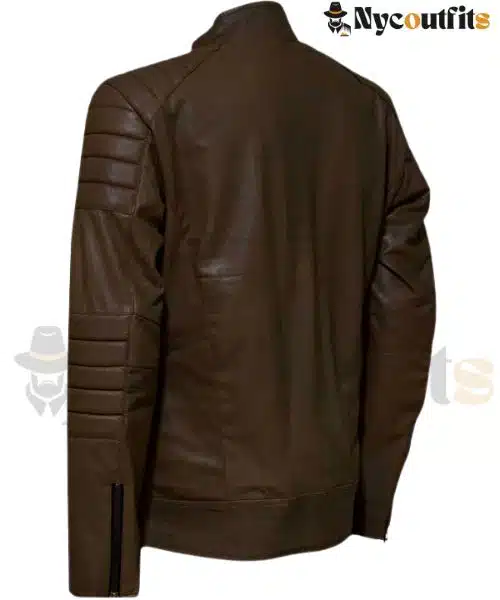 Whether you’re cruising down the highway or carving up twisty back roads, this jacket has got you covered. The adjustable cuffs and hem ensure a secure fit, while the multiple pockets provide ample storage for your essentials. The zip-up front with metal hardware adds a touch of industrial chic, while the quilted detailing provides a unique visual interest that sets this jacket apart from the crowd. With its unbeatable combination of style, comfort, and durability, the “Brown Leather Biker Jacket with Quilted Detailing” is the perfect choice for anyone who appreciates high-quality leather craftsmanship and timeless design. Whether you’re a seasoned biker or just starting out, this jacket is sure to become your go-to companion for every ride.