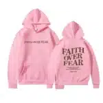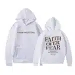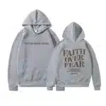 Designed with a minimalist yet impactful approach, the hoodie features the empowering phrase “Faith Over Fear” prominently displayed in bold, eye-catching lettering. This message serves as a daily affirmation to stay grounded in faith, no matter the obstacles life presents. The sleek design and neutral color make it easy to style with any casual outfit, while the cozy hood and spacious front pocket provide warmth and practicality.